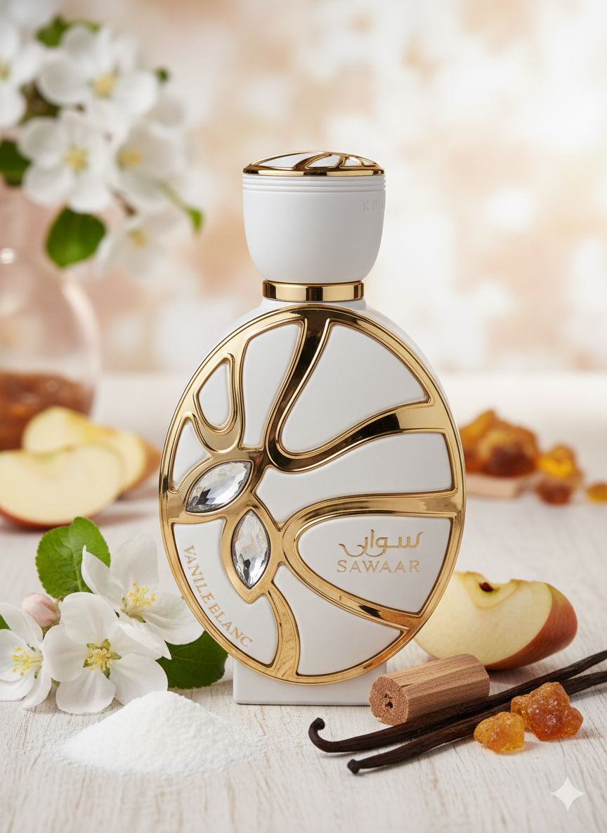 Top notes are Vanilla, Powdered Sugar and Apple; middle notes are Cashmere Wood, Amber and White Blossom; base notes are Vanilla, Sandalwood and Benzoin.
