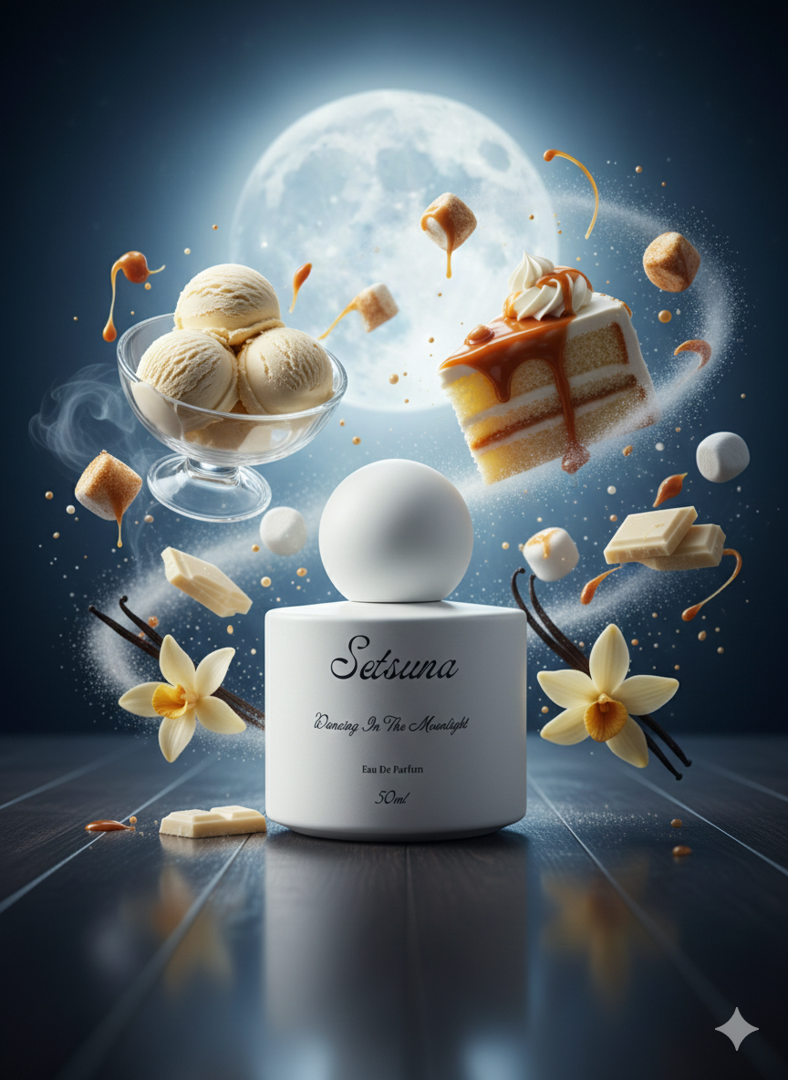 Top notes are Vanilla, Caramel and Cake; middle notes are Marshmallow and Ice cream; base notes are White Chocolate and Musk.