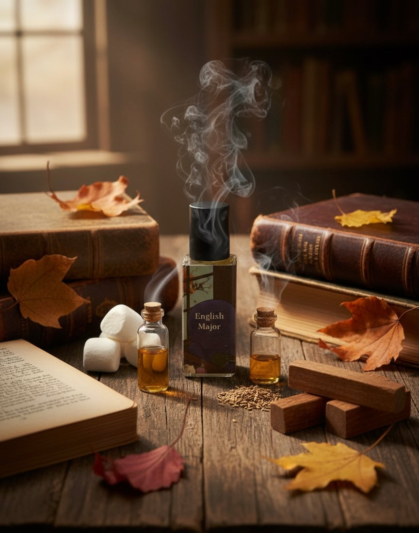Notes: library books, orris absolute, marshmallow, decalepis absolute (sustainably harvested), carrot seed, sandalwood, fallen leaves